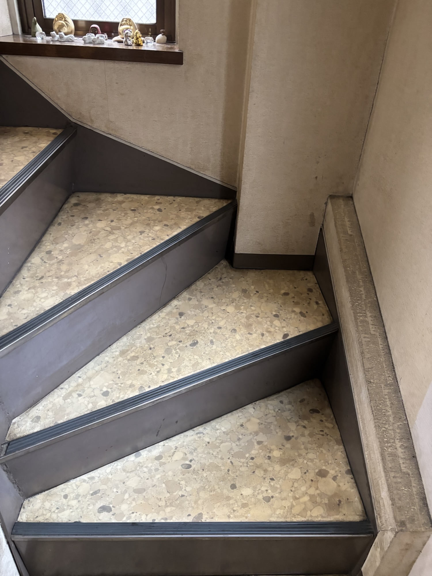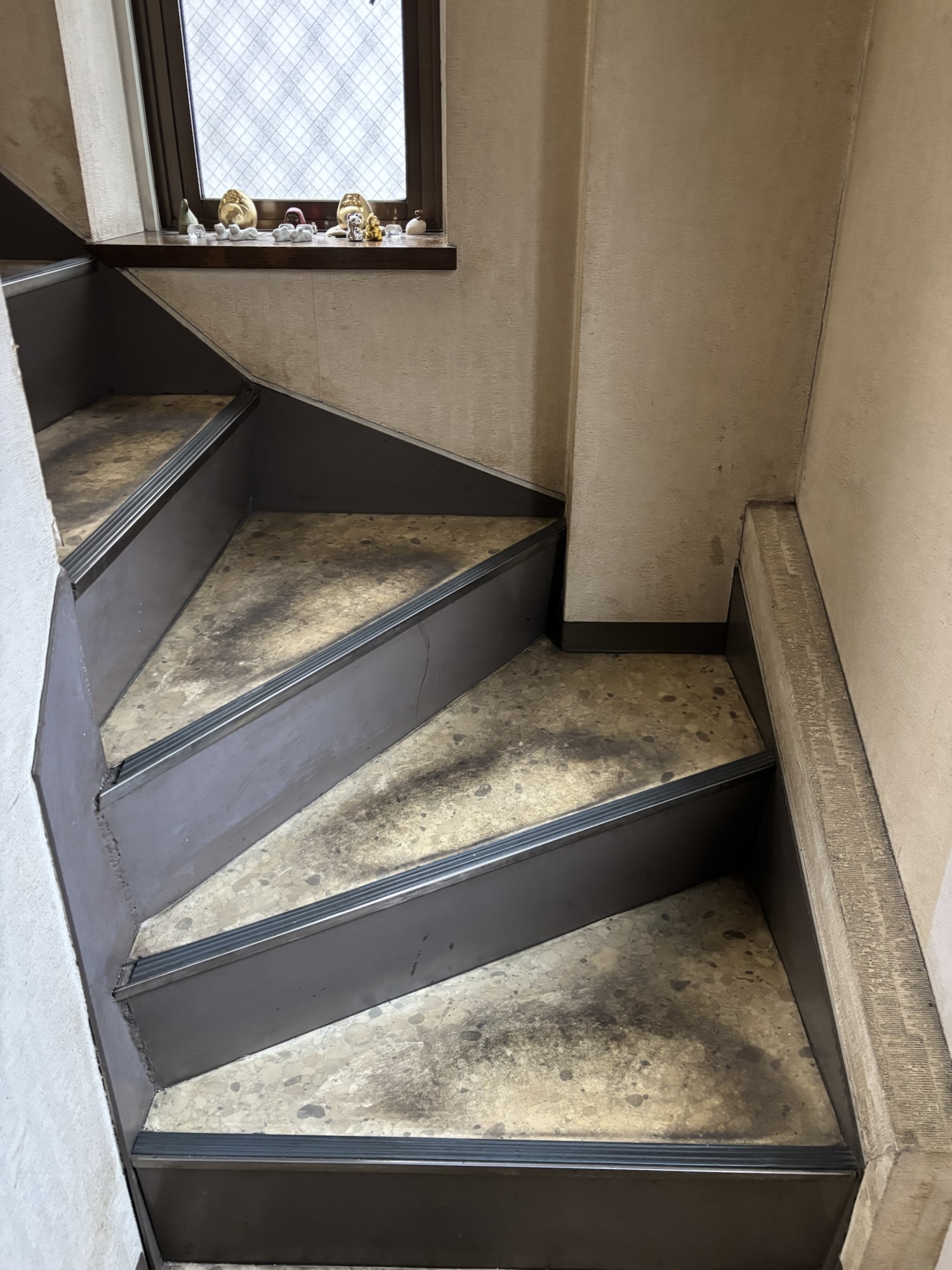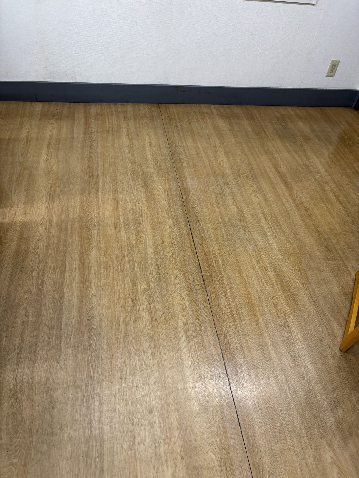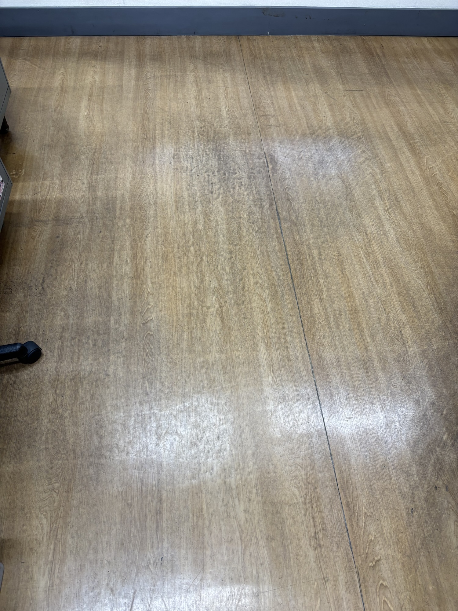 工場から土足での出入りもあり、油汚れと年数なりの汚れでした。古いワックス塗膜自体の変色もあり完璧とはいかないですが、洗浄の限界くらいまでは頑張ったので、それなりにキレイになったのではないでしょうか。また汚れたら次は剥離、ワックスをがっつりやりましょう😄